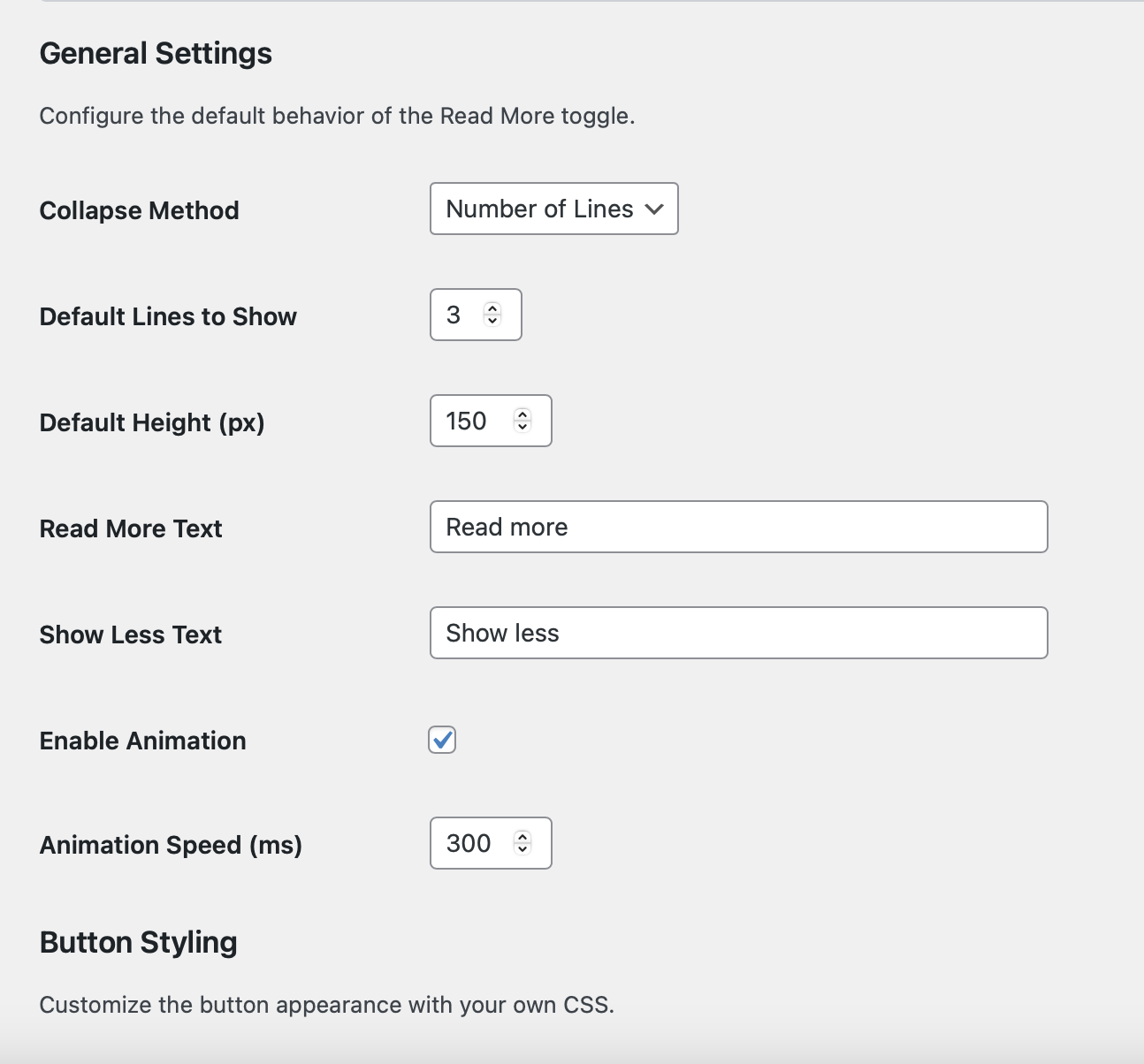 Customizable button text – set your own “Read More” and “Show Less” labels.