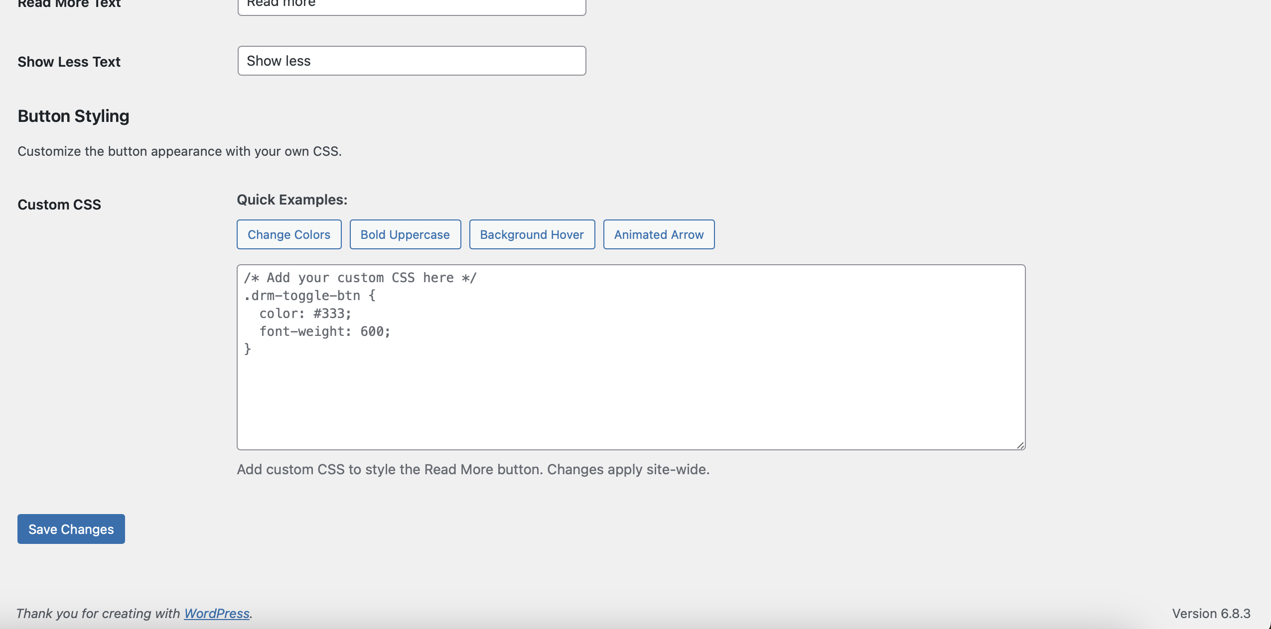 - Save changes and preview – the Read More / Show Less button will appear automatically.