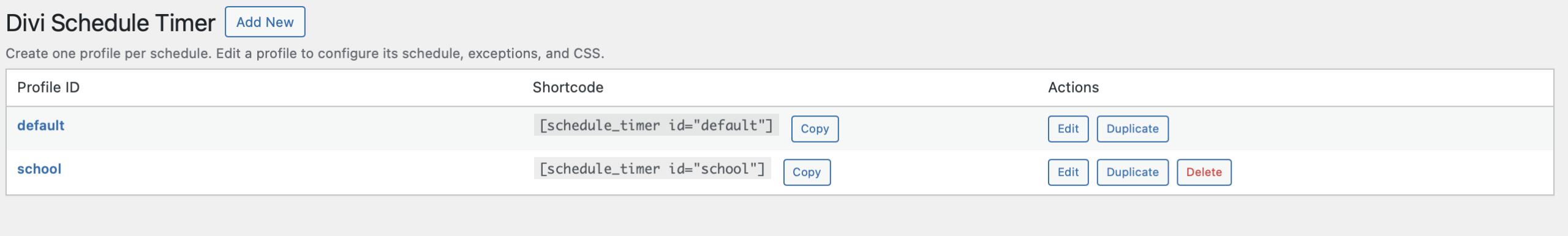 Need multiple schedules on one website? Use Profiles to display different timetables on the same page (e.g., “School” and “Studio”).