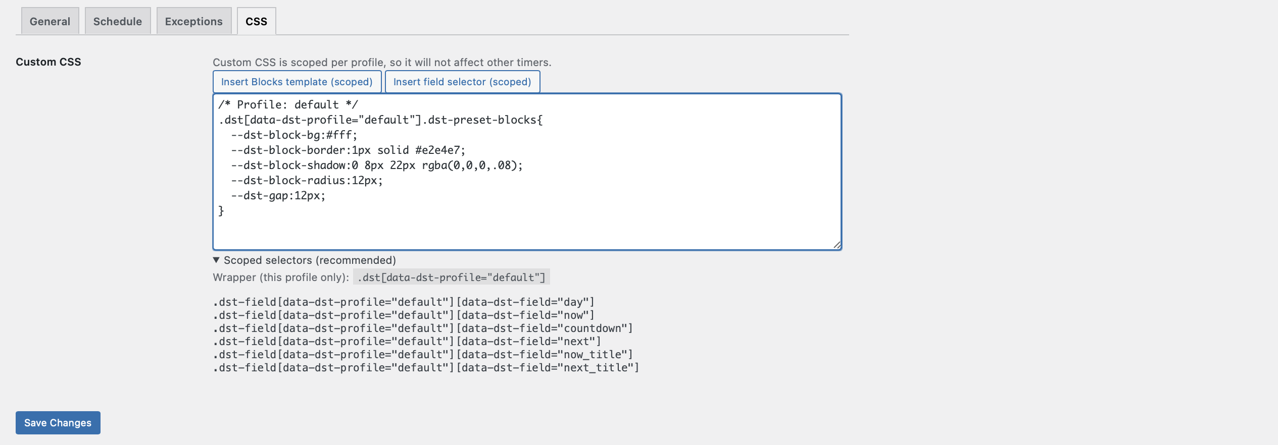 Optional: add scoped Custom CSS per profile (won’t affect other timers).